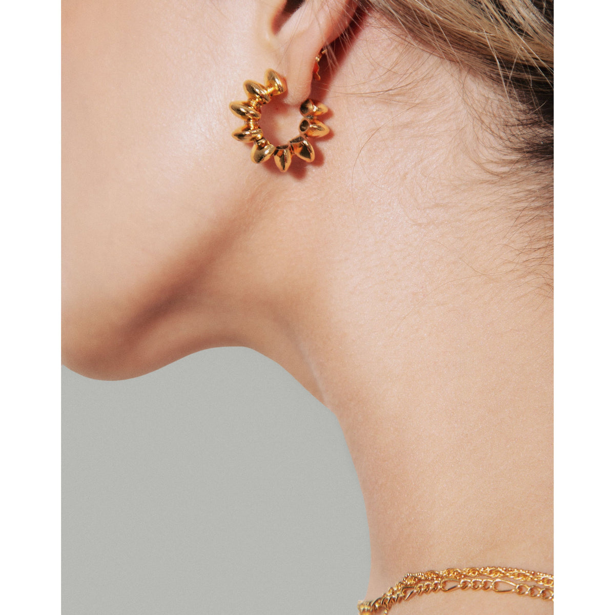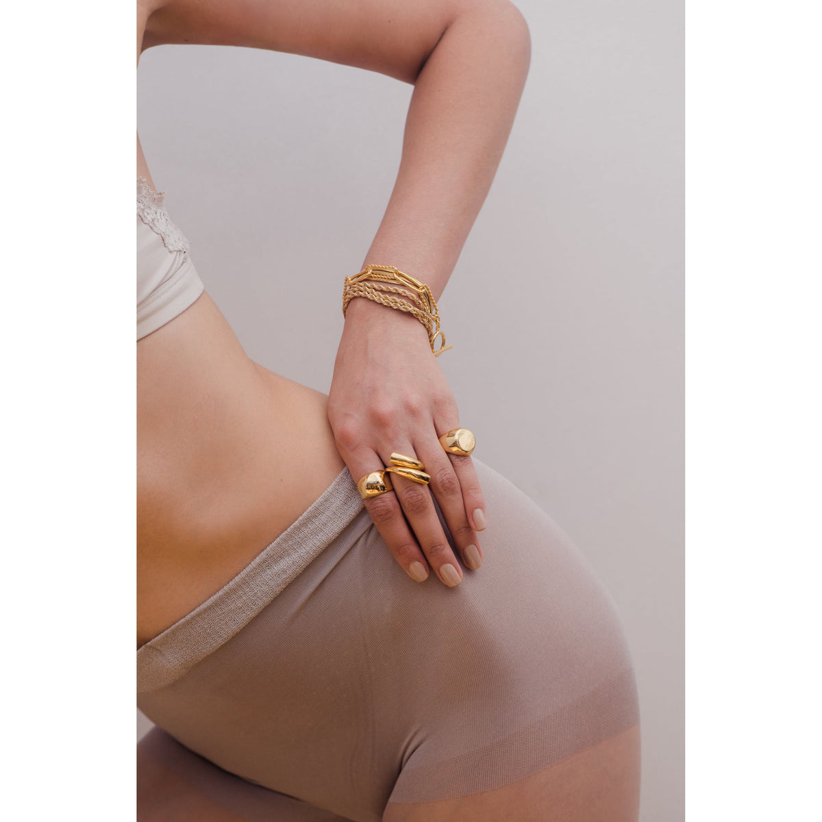 The Glass ring is a mix between a classic and contemporary piece; the reliefs on the upper part make it a piece with an avant-garde touch that attracts attention. It is one of our best sellers, and it makes a perfect duo with the companion candongas, without a doubt, they are the perfect pieces to stand out and look delicate and elegant.