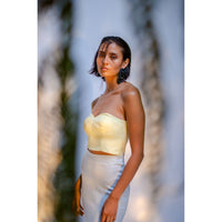 Strapless with heart neckline, has internal structure with rods and glasses, adjustment with semi -invisible zipper in the back center.