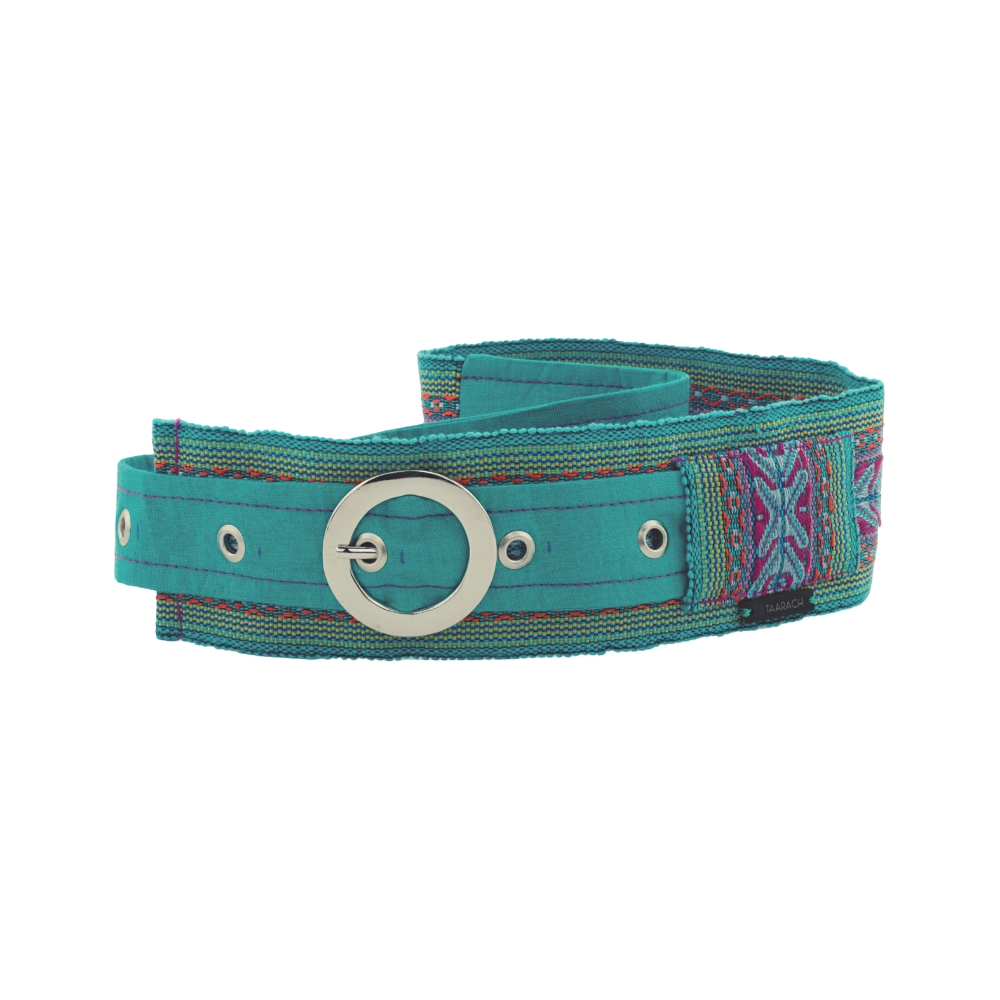 Unique designer belt inspired by the Andean dress and geometry. It is a sustainable accessory made from handwoven “faja” by Ecuadorian artisans and linen. This unique belt combines the ethnic and contemporary in a trendy way that brings a touch of style and transforms an everyday look into something special.