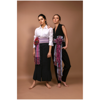 Designer belt inspired in timeless Andean textile traditions, designed to add a touch of glamour to the outfit. It is made of handwoven “faja” and linen. It is a versatile woman belt to wear in various ways with a spectacular faja handmade flower that makes it more special. This sustainable accessory enhances uniqueness and individuality to anyone.