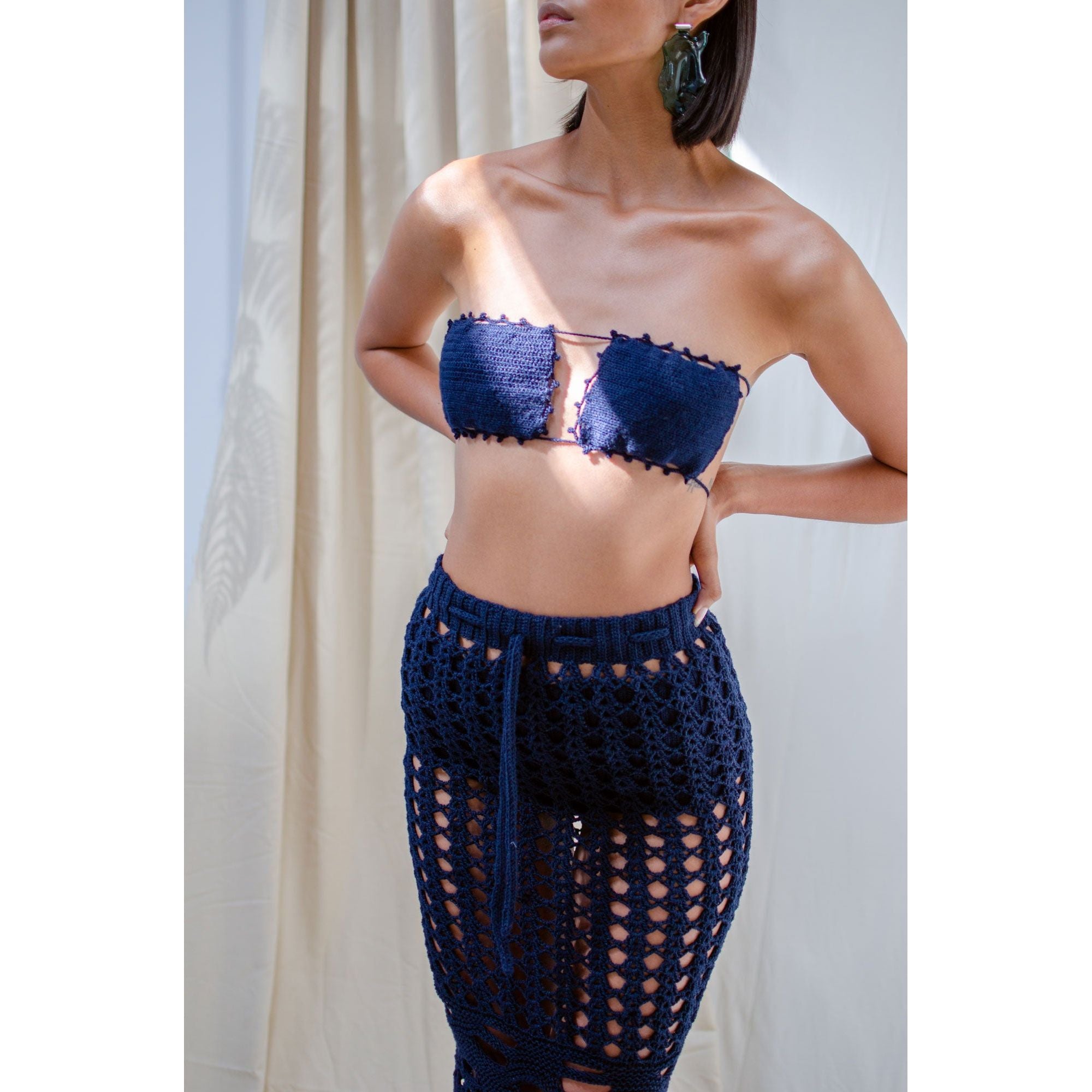 Two pieces, adjustable top and panty tall, handmade fabric in crochet technique.