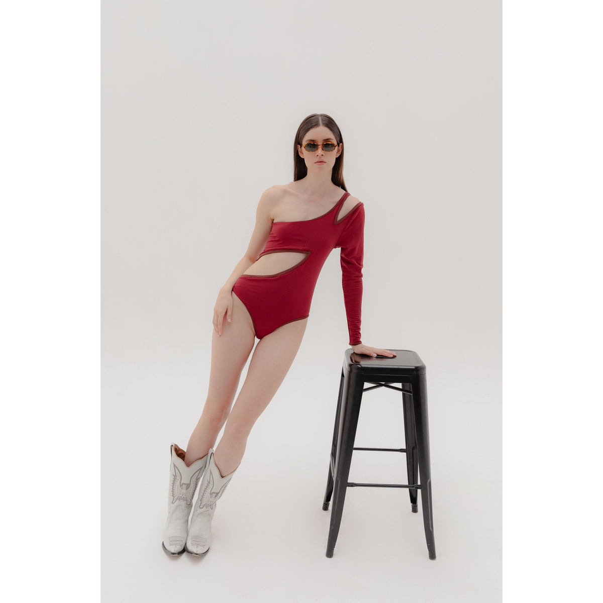 Circular cut at the top and skinny strap on the swimsuit; request another size before buying by calling contacto@canelaswim.com